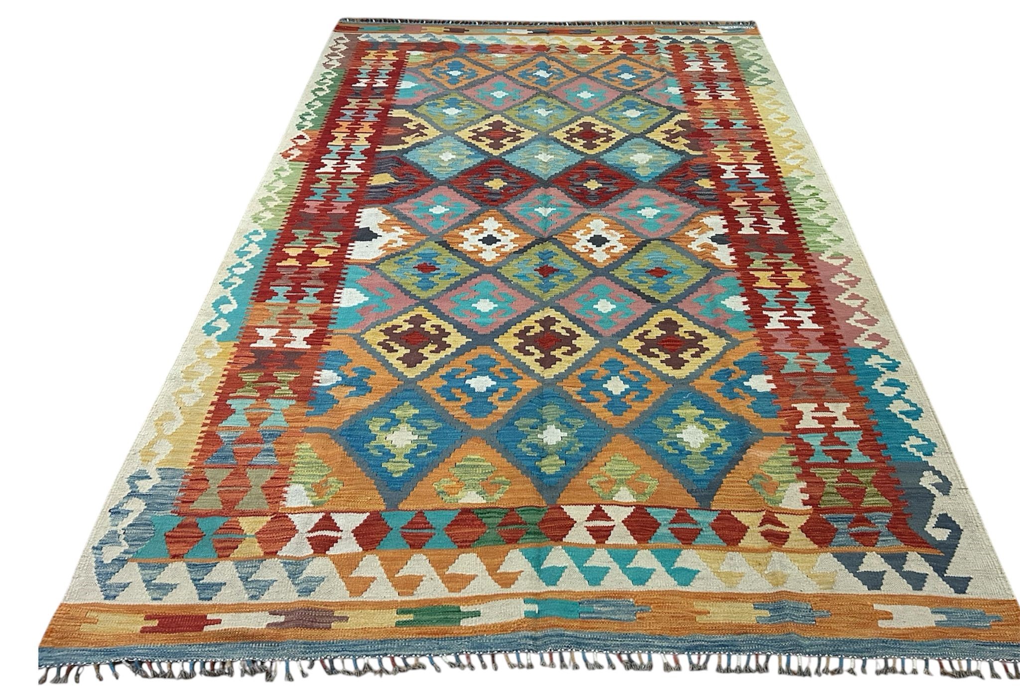 A hand made rug from wool by Afghan women.